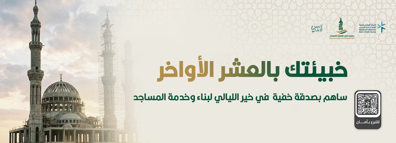 شارك في بناء بيوت الله، واجعل لك خبيئة من عمل صالح في العشر الأواخر من رمضان، لتكون لك صدقة جارية وأجراً مضاعفا لك .